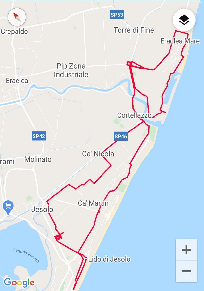 Im finalen Teil der Tour kommen wir durch den parallel zum Strand verlaufenden Pinienwald von Eraclea Mare, um anschließend auf die am Kanal Revedoli entlangführende Asphaltstraße zurückzukehren. Wir überqueren erneut den Piave und kehren durch den Pinienhain nach Jesolo zurück.